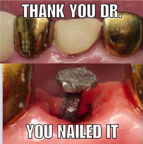 No hay mucho que decir sobre este caso. Realmente no puedo imaginar a un dentista clavando un clavo en el hueso de la mandíbula de alguien.